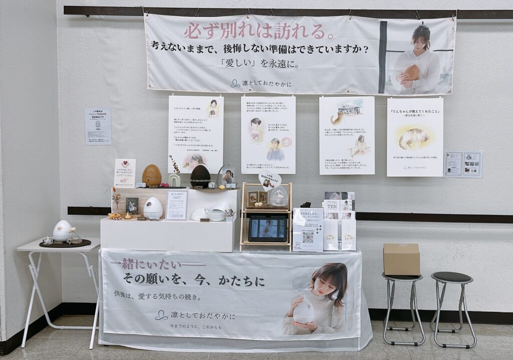 当日は「ペット骨壷TEN」を展示し、実際に手に取ってご覧いただきました。